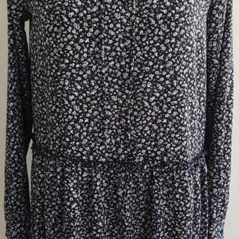 ONLY Pigalle hverdagskjole i blå farve, størrelse M til kvinder. Kjolen er fremstillet i polyester og har et mønstret design med knaplukning foran samt lange ærmer. Kan anvendes som en casual kjole til dagligt brug.