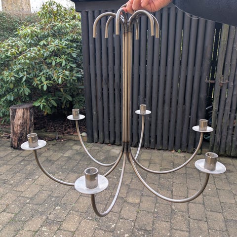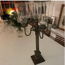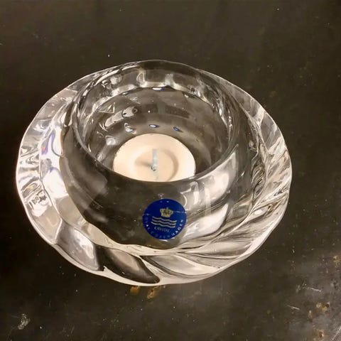 Lysestage i metal med rund fod og glasholder til fyrfadslys. Designet til at holde små lys sikkert og dekorativt. Materialet er metal med glas, hvilket giver et moderne og stilrent udtryk