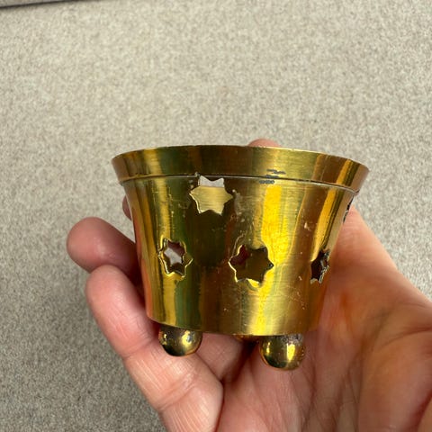 Pæn og velholdt lysestage i messing med brun / røgfarvet glasskærm.