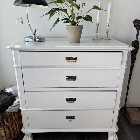 Kommode i fyrtræ med 3 skuffer og nye messinggreb. Fin og velholdt. Mål B80 D44 H70. Pris 650,- ♻️ Varen findes hos Shop’n lop Fredericiavej 97 7100 Vejle. Instagram Shopn.lop.