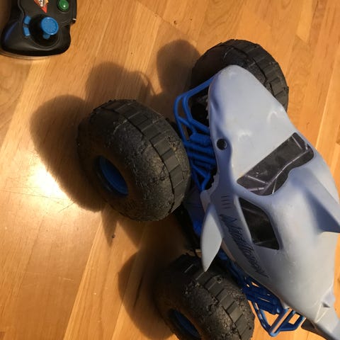 Fjernstyret Jeep bil med tilhørende fjernbetjening. Bilen er designet til børn. Egnet til indendørs og udendørs leg.