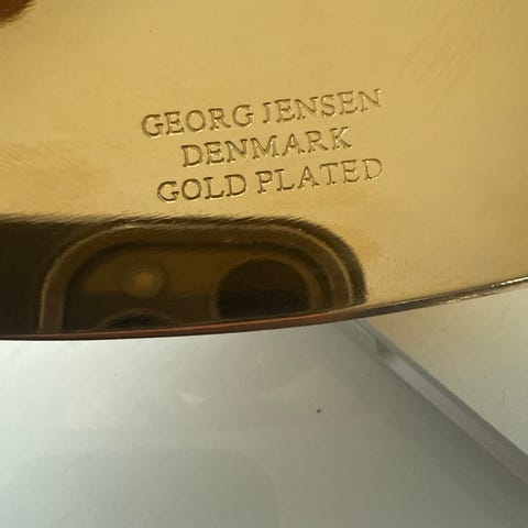 Georg Jensen. Lysholder, rustfrit stål belagt med 18 karat guld= 250,-kr.