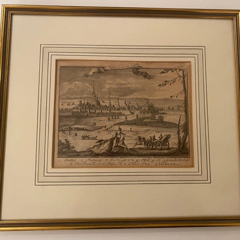 Koloreret kobberstik, Bulbierg i Vester Han Herred, ca. 1769. I god stand (rammen har set bedre dage).