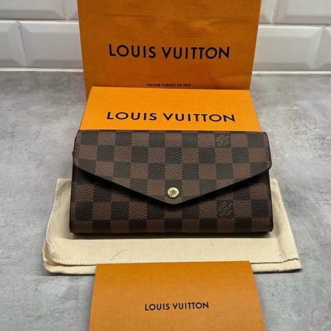 Eksklusiv klassisk Louis Vuitton Sarah Wallet i Monogram-canvas. Elegant og rummelig med plads til kort, kontanter og mønter.