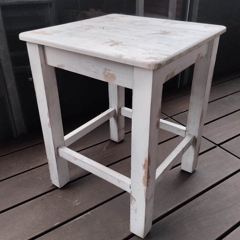 2 stk gamle taburetter med flotte ben som er nymalet i svag mat gul farve og gult nyt gult møbelstof på sædet . Måler 40 cm i højden og 47 cm i længden og er 33 cm dyb . Prisen er pr stk