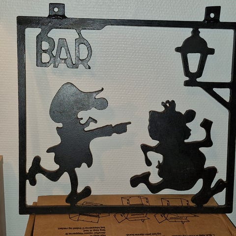 Plakat med kasket Karl - den måler: 40 x 30 cm - det er ikke papir den er trykt på men noget stof ligende materiale.