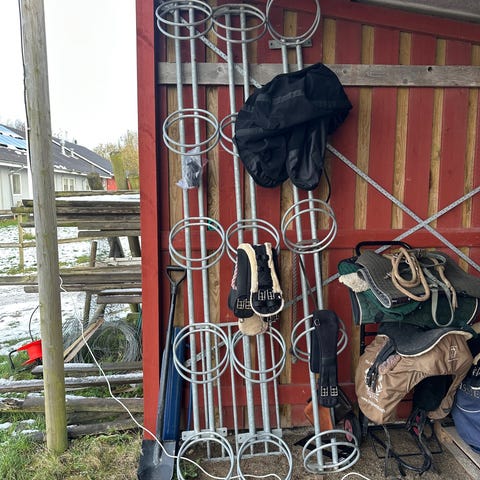 Galvaniseret stativ til 5 cykler. Til montering på mur/væg eller stolpe.