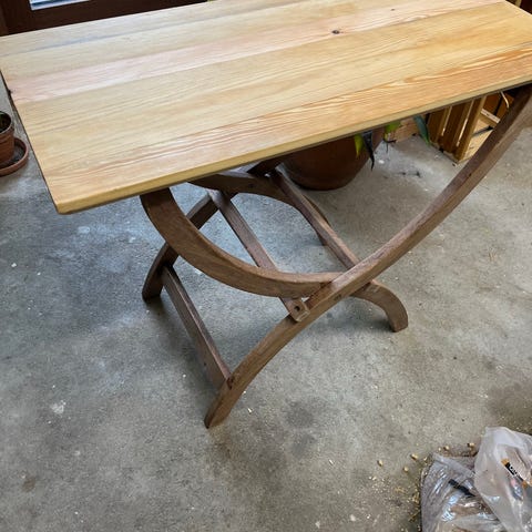 sofabord i træ med. Bordet har mønstret træoverflade og metalben. Håndlavet.
