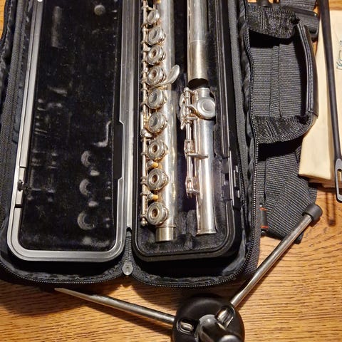 Yamaha 211s tværfløjte med tilhørende sort etui.