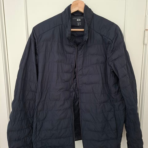 Uniqlo ultra light Dun Vest i størrelse XL og farven blå. Vesten er fyldt med dun, hvilket giver isolering og varme. Velegnet til udendørs brug og som mellemlag under koldere forhold.