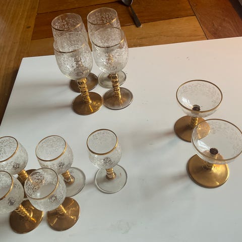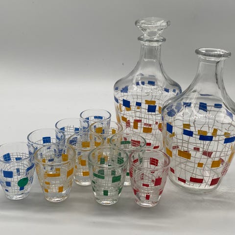 Sættet består af 1 karaffel med prop og 10 små glas.