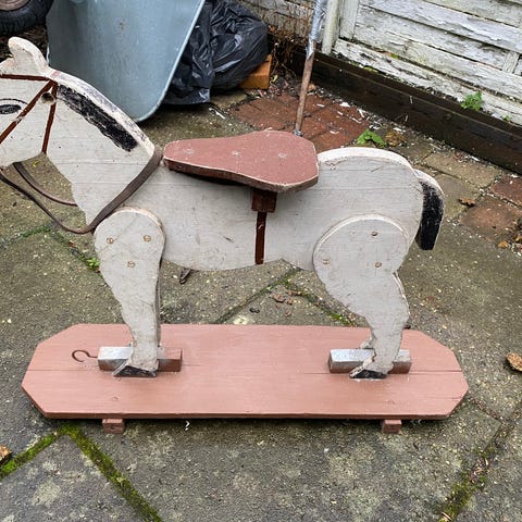 Fin træhest med hjul, til børn.