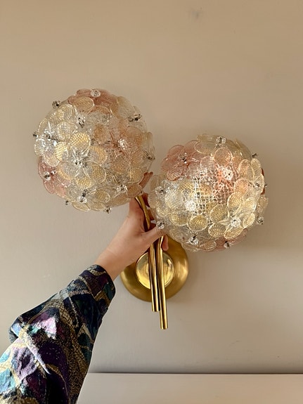 Super smuk lampefod i mundblæst Murano glas – ca 1970 – farven er lys gul med tynd hvid stribe/swirl.