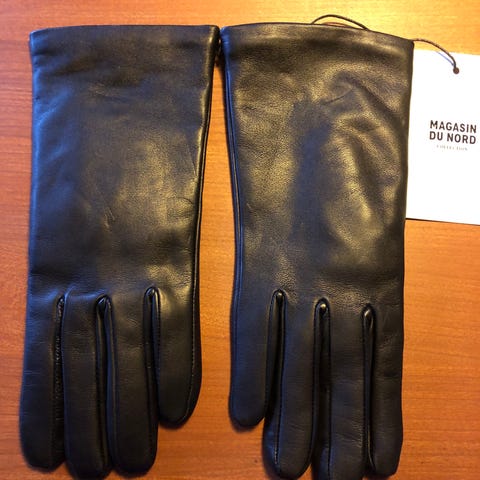 Nye sorte læderhandsker af mærket aura str 7.5, Tyndt strikker.