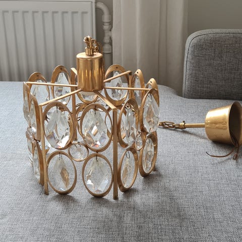 Fin og fejlfri loftlampe. Lavet i messing med røget glas. Sender gerne mod porto