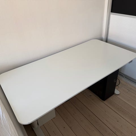 Sort skrivebord med størrelse 140x80 og justerbar højde. Brugt i et år.