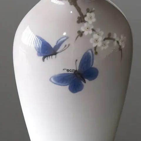 Dette er en Bing & Grøndahl vase med motiv af kirsebærblomster og sommerfugle.