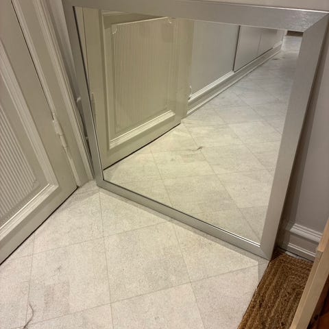 Designer spejl fra 3-falke møbler, 100 x 100 x 4,5 cm, aluramme og kan ophænges i flere positioner, passer til badeværelse, entre eller andet rum