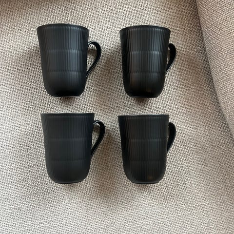 4 stk Royal Copenhagen sort riflet krus