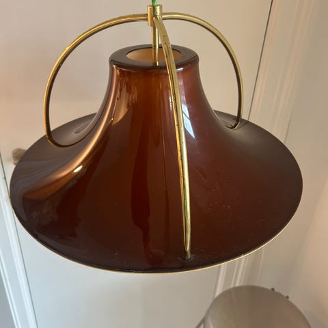 Den smukke Hekla pendel er et mesterværk fra Fog & Mørup, skabt i samarbejde med designerne Jon Olafsson og Petur B. Luthersson omkring 1965. Lampen er opkaldt efter den islandske vulkan Hekla og udstråler en rå, geometrisk elegance, der passer perfekt ind i både moderne og retro-inspirerede hjem.