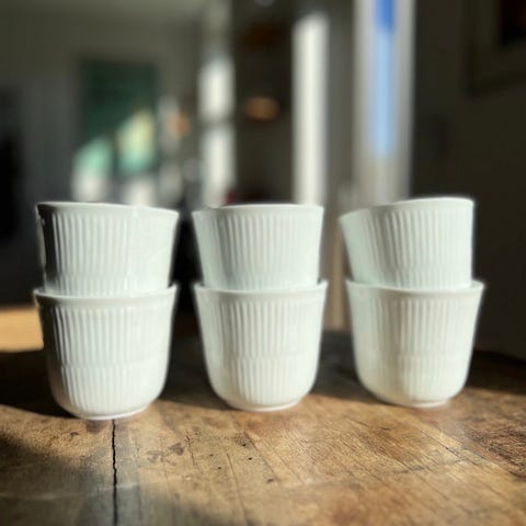 4 stk Royal Copenhagen Hvid Riflet termokop 39 cl. Hentes i Odense C nær OUH eller sendes på købers ansvar og pris 😊