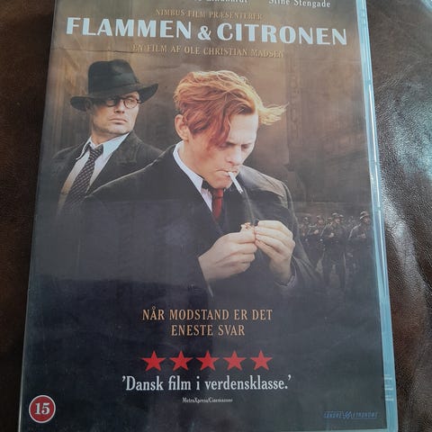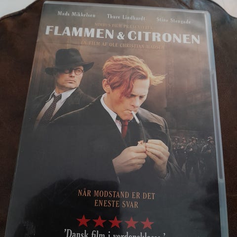 Flammen & Citronen DVD film med dansk tale og undertekster. Filmen er en historisk dramafortælling om modstandsbevægelsen under Anden Verdenskrig, med skuespillere som Mads Mikkelsen, Thure Lindhardt og Stine Stengade.