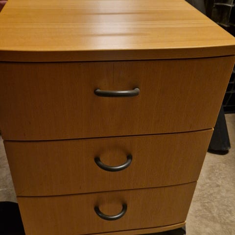 Har tre gode skuffe. Har 4 hjul, som kan låses. Velegnet til f.eks. printer.