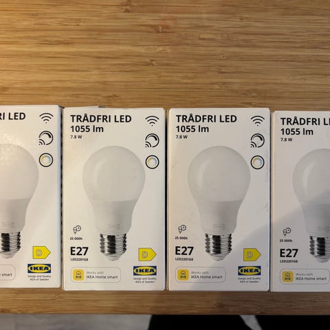 Så her er 4 helt ubrugte IKEA Trådfri E14 pærer med 470 lumen og justerbar farvetemperatur (hvidt spektrum) til en fin pris.