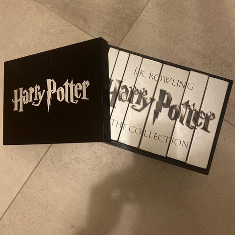 J.K. Rowling Harry Potter bogsæt indeholder flere bøger relateret til Harry Potter-universet, herunder 'Film Wizardry', 'Magical Places from the Films', 'Page to Screen', 'Troldmandsalmanakken' og andre.