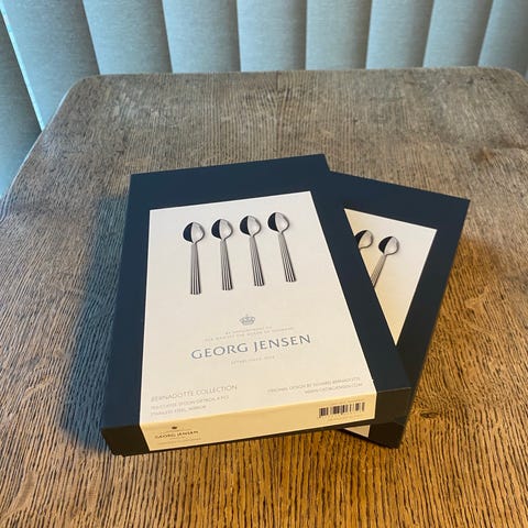 2 uåbnede æsker Georg Jensen Bernadotte kagegafler med 4 stk i hver.