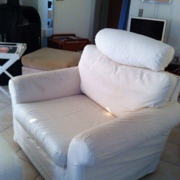 Jysk Alfred Homann lænestol med skammel i beige bouclé