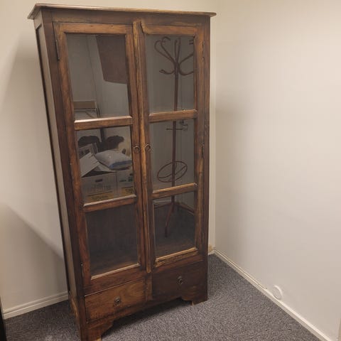 Skabet bruges typisk til smykker eller miniature parfumer. Det er op til dig☺️