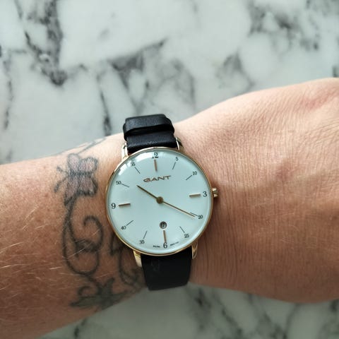 Quartz. Hvid læder rem.