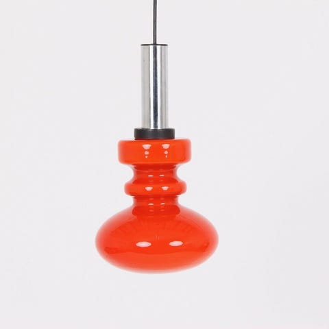 Orange Retro Pendel med champagnefarvet Metalskærm