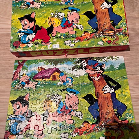 To gamle mninpuslespil fra Schmidt og Walt Disney Corporations indeholdene Snehvide og Bambi.