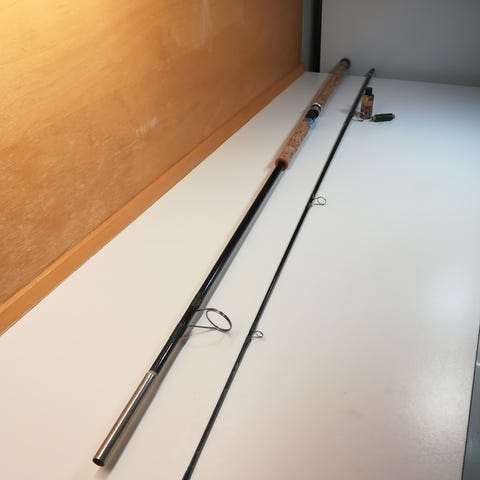 Hjemmebygget Glasfiber fiskestang fra cirka halvfjerdserne.
