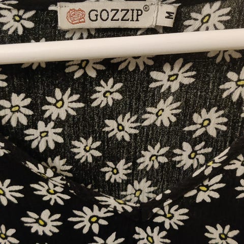 Smuk kjole i dyreprint/leo print, som glider over i blomstermotiv i smukke søde nuancer. Kjolen har V-hals, tre knapper ned over brystet, overskæring under bryst og god vidde. Kjolen har ligeledes lommer. Der er elastik i de lange ærmerne - elastikken kan man evt. kan fjerne, så man får brede ærmer. Størrelsen er 46 - 48 svarende til xxl. I stor-pige størrelser størrelse M. Kjolen er fra Gozzip og i lækker, åndbar viskose.Ny-pris: 1099 kr.