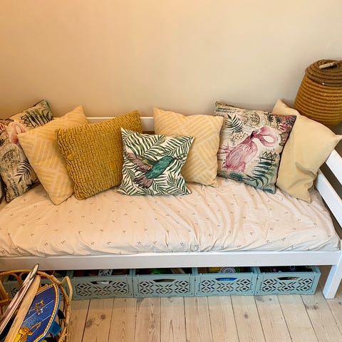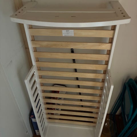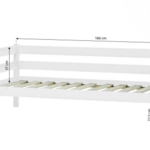 Babydan juniorseng i fin stand. Sengen måler 160x70. Der er sengehest på begge sider. Madras medfølger ikke.