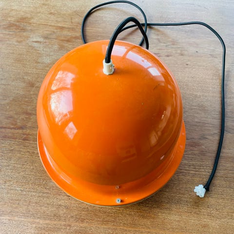 Lidt patina. Højde 29 cm. Diameter 32 cm. Ledning sort stof på 2 m.