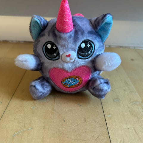 rainbocorns bamse med æg, den har lidt slid i glimmeret ved hornet ( se billede)