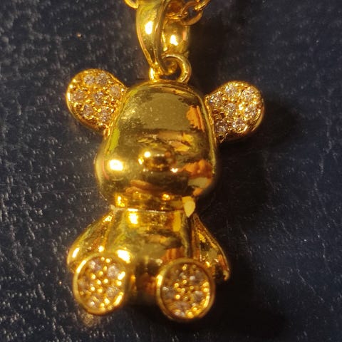 Hej, jeg sælger denne mega søde halskæde med et vedhæng i form af en klassisk vingummibamse, perfekt til alle, der elske gummy bears.