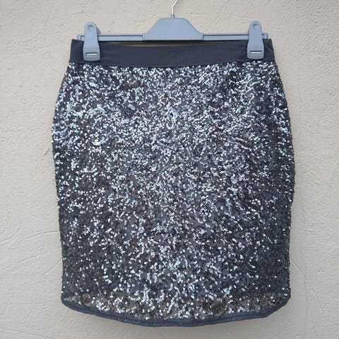 Fra Dranella eller Fransa mener jeg, med sort underskørt, med læg/plissé og perler på både nederdel og bælte, lynlås i siden, tror det er bomuld, måler 63 cm (målt fra livet og ned), mave 44x2 cm, brugt få gange, pænt og velholdt