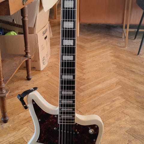 Donner HUSH-X elguitar, måske 1 times brug. Vejer kun godt 2 kilo og fylder ingenting, pakket i den medfølgende gigbag med alt tilbehør (øresnegle mv., i ubrudt emballage).
