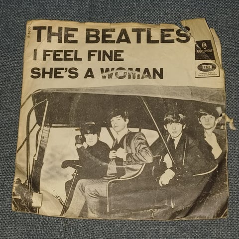 The Beatles Top 10 vinyl single med sort farve og 7 tommer størrelse. Indeholder sangene "She Loves You" og "I'll Get You".