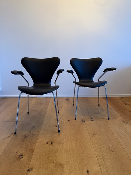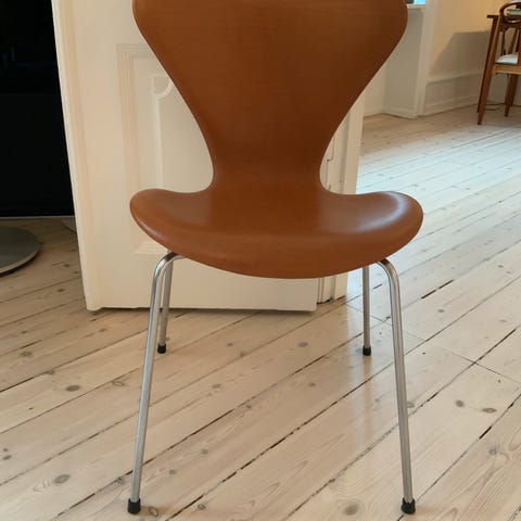 7er stole fra Fritz Hansen ny polstret i cognac læder med fast ryg med nye ben forlængere med felt