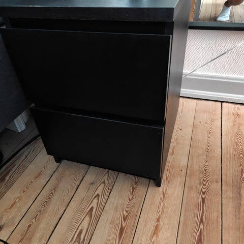 2 sengeborde, uden bagbeklædning. Lidt klister på den ene, som ikke er forsøgt fjernet.