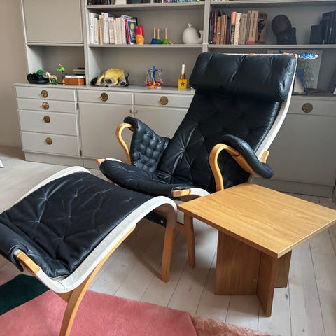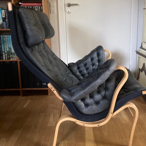 Betræk i sort læder,til Bruno Mathsson Pernilla Lænestol.