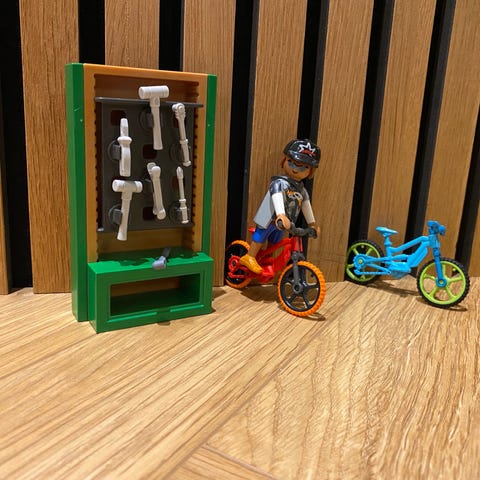 Playmobil børnelegetøj bestående af to cykler med figurer og tilbehør. Legetøjet inkluderer to figurer med tilhørende cykler og ekstra dele, der kan bruges til leg og fantasiudfoldelse.