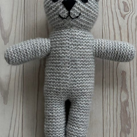 Fantastisk lækker strikket Bredahl bamse, H 43 cm. Håndstrikket i Nepal i uldgarn
