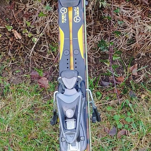 Rossignol Race Carver Racecarver ski med bindinger. Skiene er designet til alpint skiløb og har en racecarver form, som er egnet til præcisionskørsel på pister.